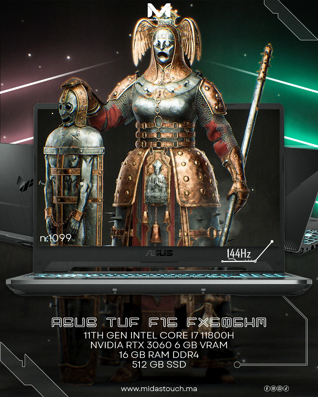 ASUS TUF F15 FX506HM – Intel i7-11800H, 16GB DDR4, 512GB SSD, NVIDIA RTX 3060 6GB, 15.6” 144Hz Gaming Laptop