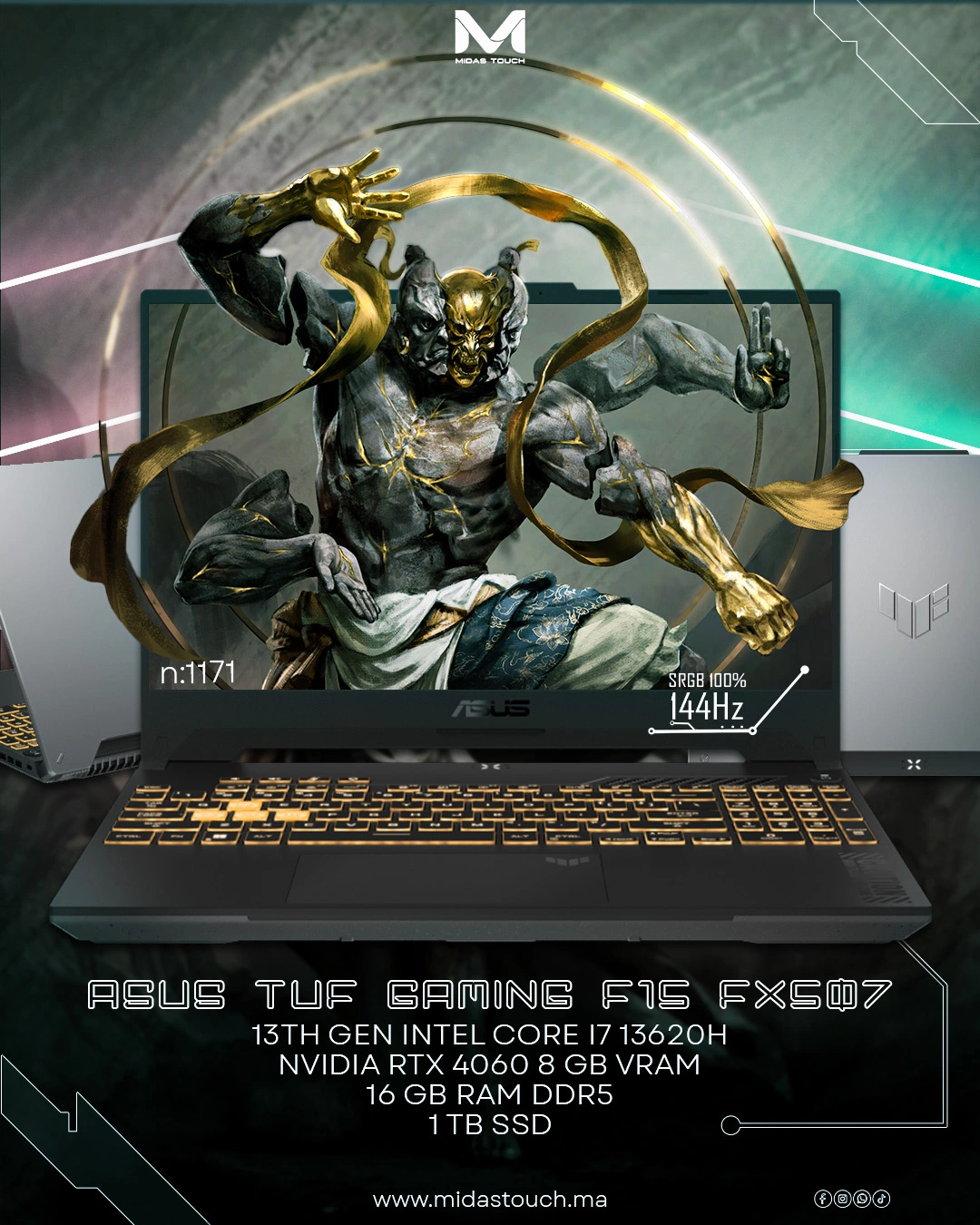 ASUS TUF F15 FX507 – Intel i7-13620H, RTX 4060, 16GB DDR5, 1TB SSD, 15.6” 144Hz