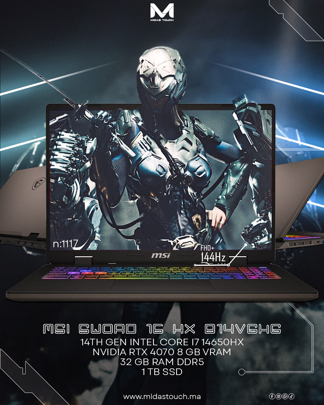 MSI Sword 16 HX B14VGKG – Intel i7‑14650HX, RTX 4070 8GB, 32GB DDR5, 1TB SSD, 16” FHD+ 165Hz